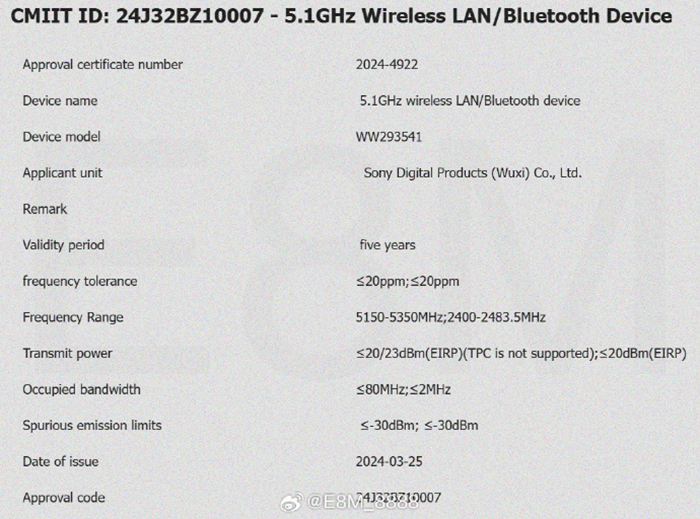 Sony has just registered a new camera code in China “WW293541”. It has 5.1GHz/2.4GHz wireless network & Bluetooth support. According to rumors, this new camera could be long awaited Sony ZV-E10 II or FX3 II. Stay tuned for more info.