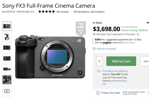 Three years after its initial release, the Sony FX3 has received its first significant price reduction in the US. The FX3, which was announced on February 23, 2021, is now available with a $200 discount at major retailers such as Amazon, B&H Photo, and Adorama.