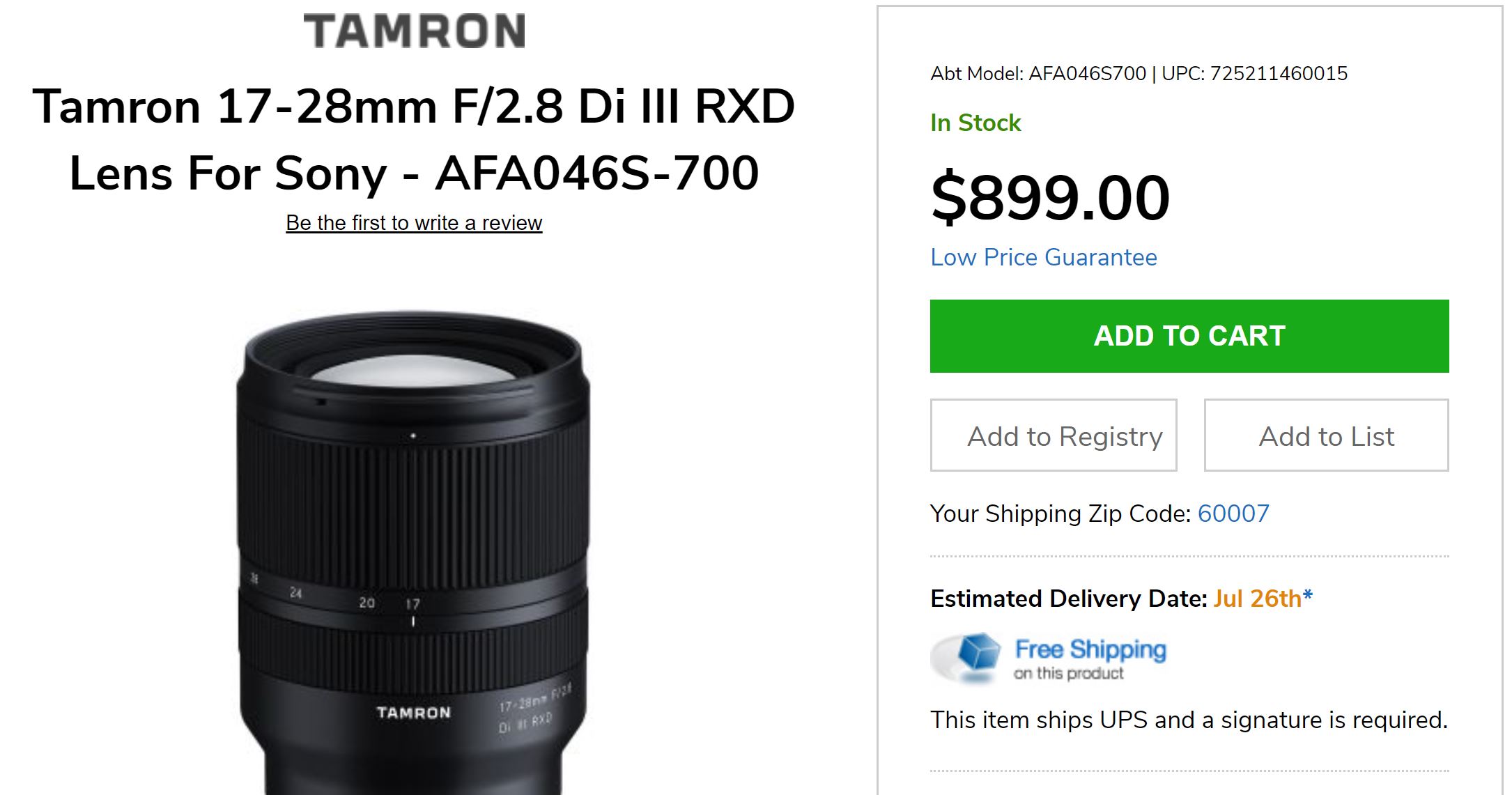 The new announced Tamron 17-28mm f/2.8 Di III RXD lens for Sony E-mount now officially released, early pre-orders now shipping. Currently this lens is now in stock at Amazon and ABT.